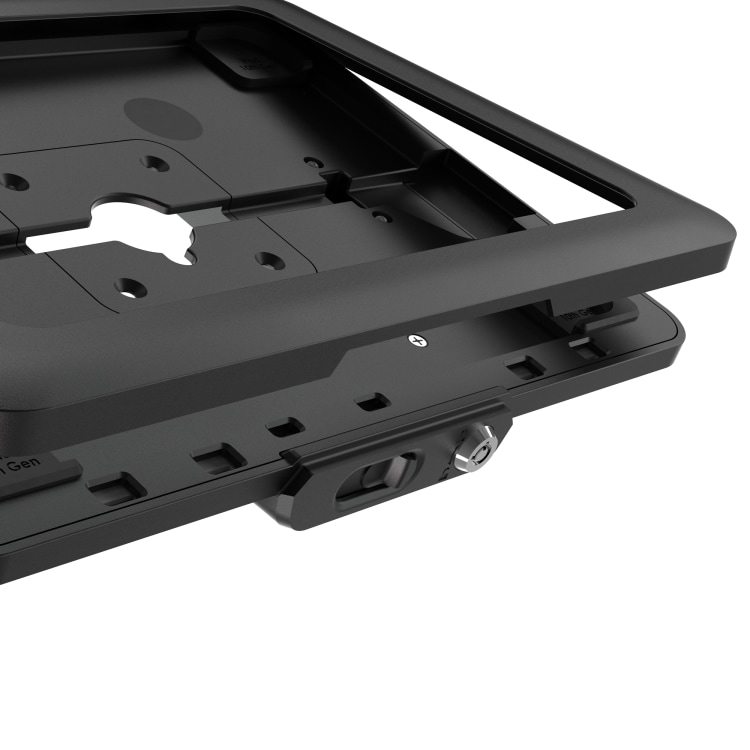 Gardez votre tablette chargée grâce à un système de gestion des câbles interne totalement dissimulé dans l’étui fermé. Le support pour tablette Elite offre deux options de gestion des câbles : vous pouvez faire passer discrètement le câble de l’appareil à travers le support et la base, ou bien le faire passer directement par l’ouverture prévue à cet effet à l’arrière de l’étui.