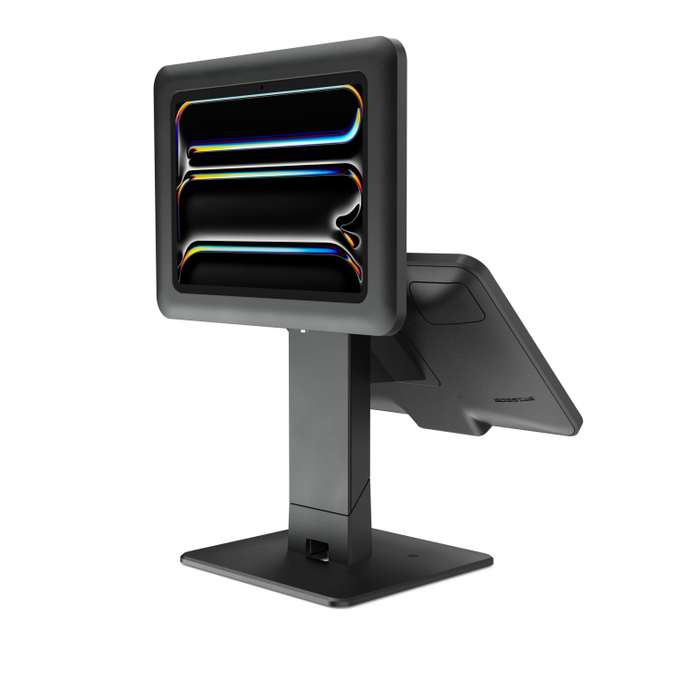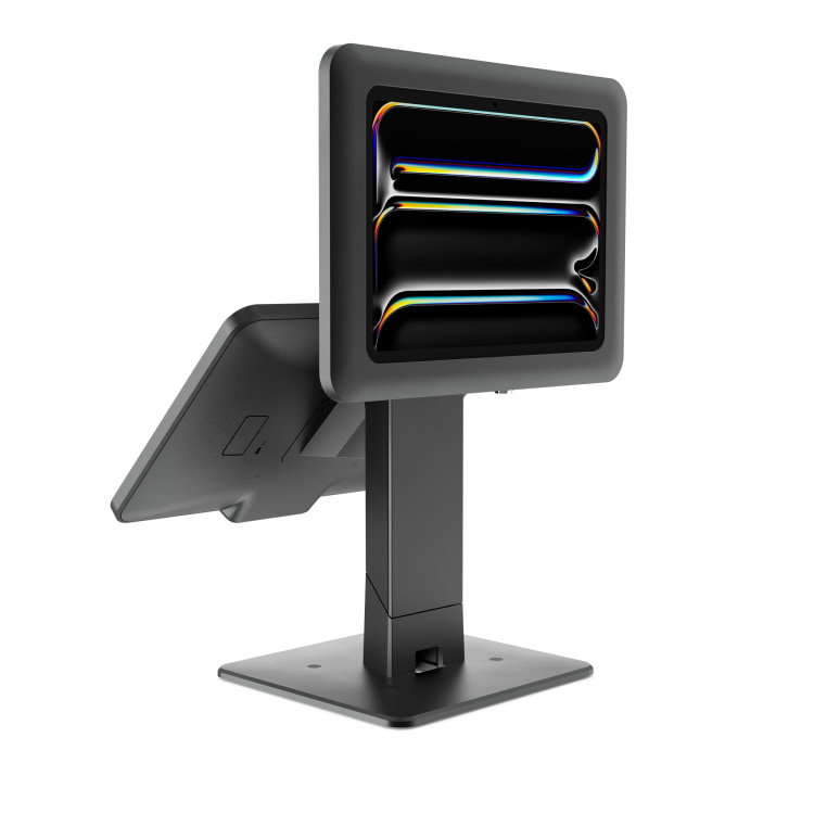 Le Gemini est un support double pour tablettes. Il offre un réglage d’inclinaison à 45° pour l’écran supérieur. Conçu pour les systèmes de point de vente destinés au personnel et aux clients.