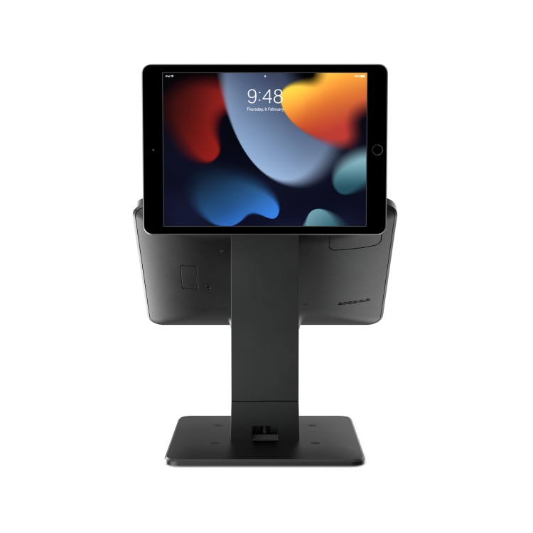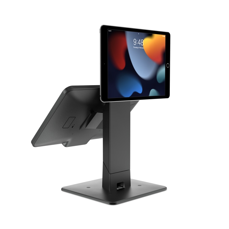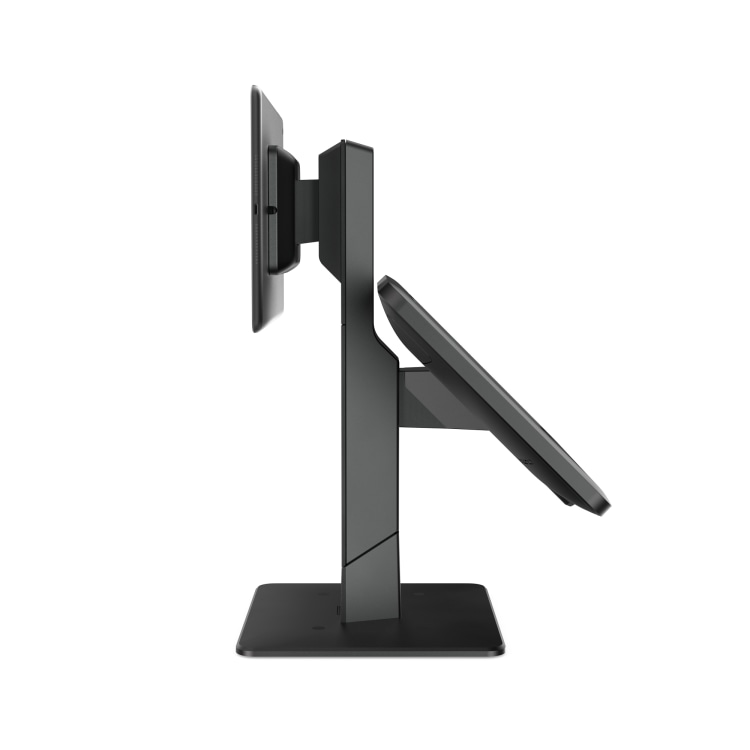 Le Gemini est un support double pour tablettes. Il offre un réglage d’inclinaison à 45° pour l’écran supérieur. Conçu pour les systèmes de point de vente destinés au personnel et aux clients.