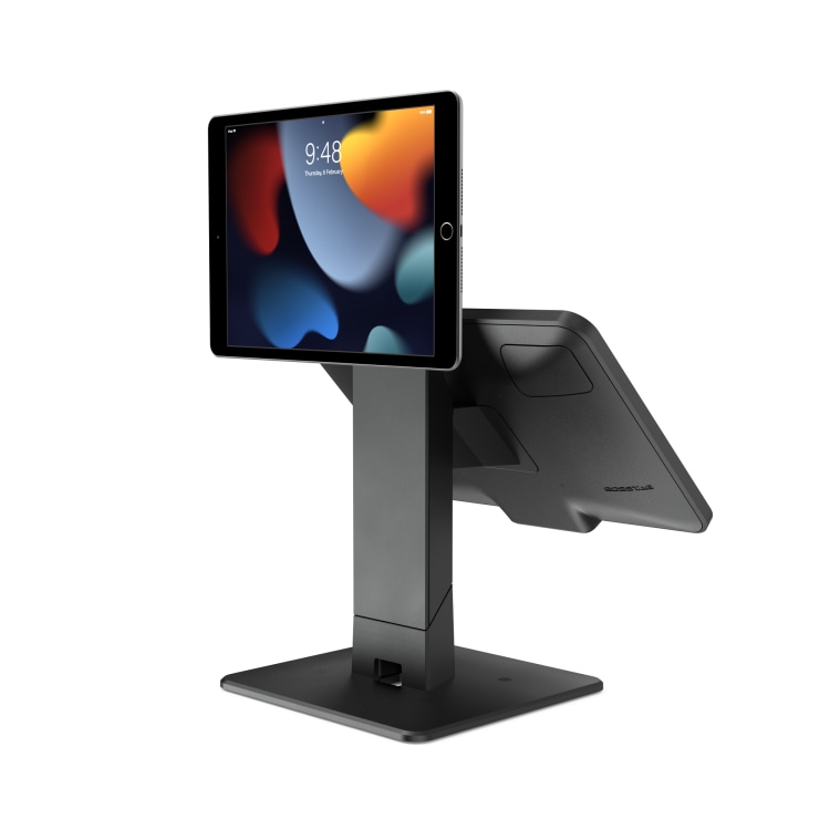 Le support verrouillable Elite est une solution durable et polyvalente pour présenter des tablettes, et son mécanisme de verrouillage assure la protection de la tablette contre le vol.